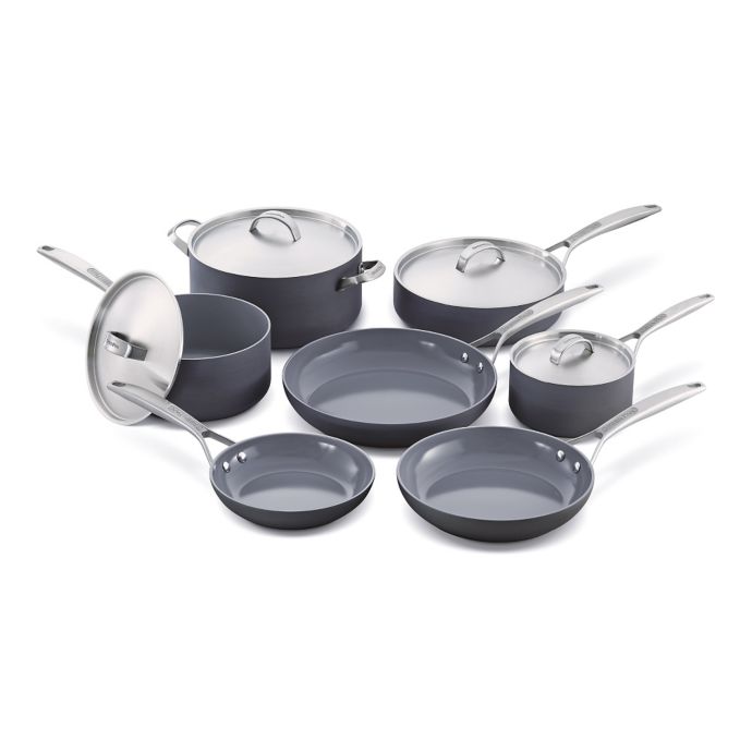 Greenpan s valencia pro ceramic nonstick cookware boasts a durable hard anodized aluminum body for even heating and a dishwasher safe nonstick cooking surface for easy cleanup.