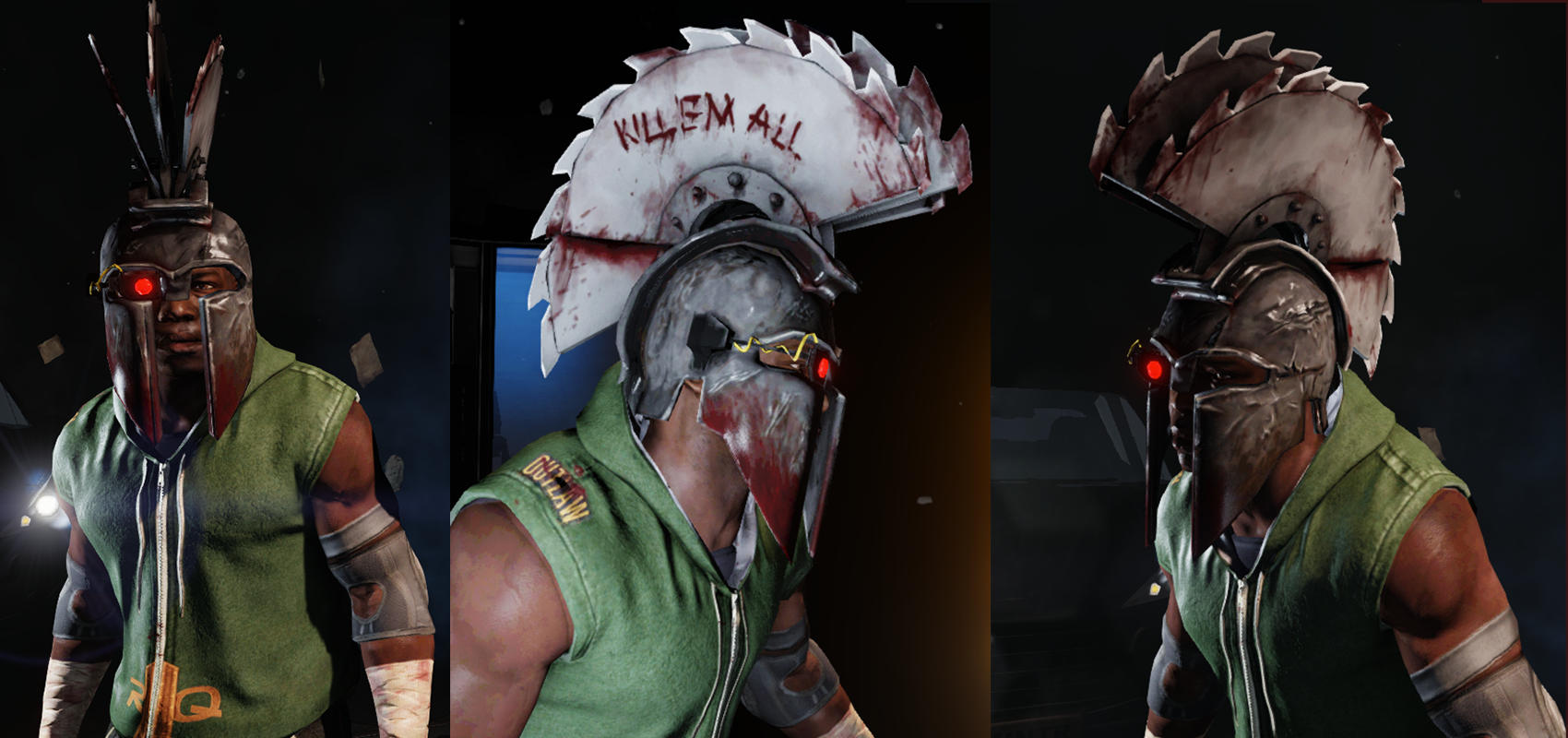 The fleshpound appears as an extremely muscular and tall figure with many metal plates on it.